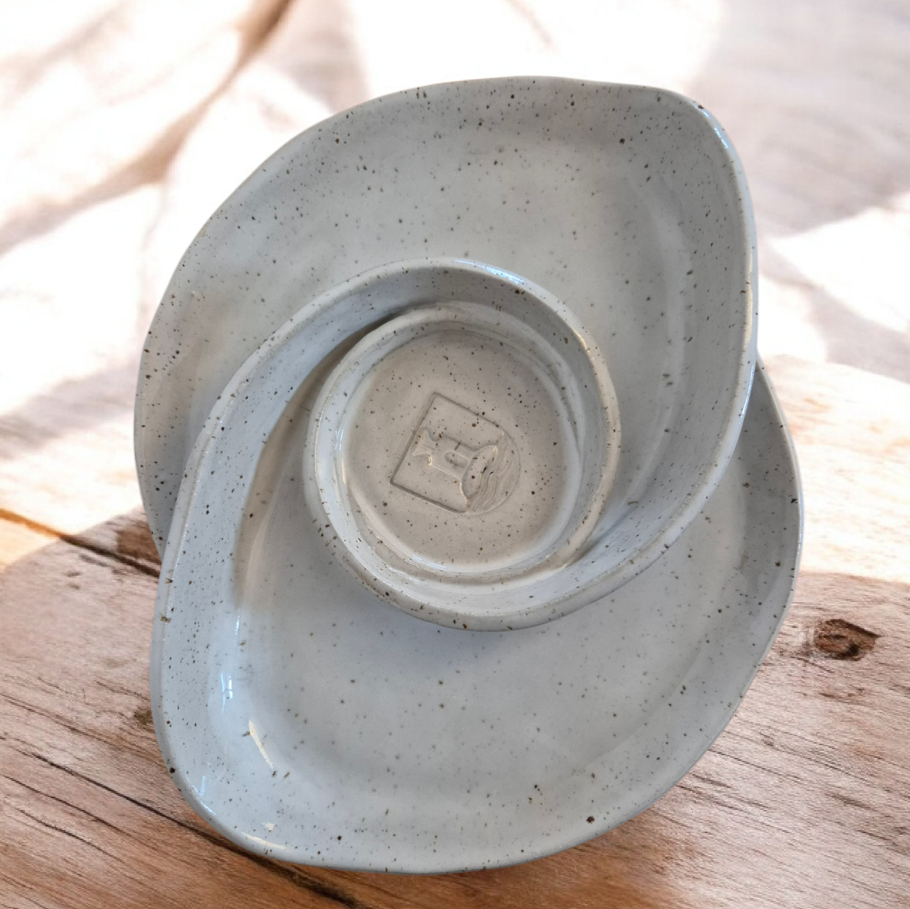 Eine qulitativ hochwertige Platte mit 2 Seiten zum befüllen, Dip Möglichkeit mittig. Ausgezeichnet mit dem Wahrzeichen Norderneyer Kap in der Mitte.