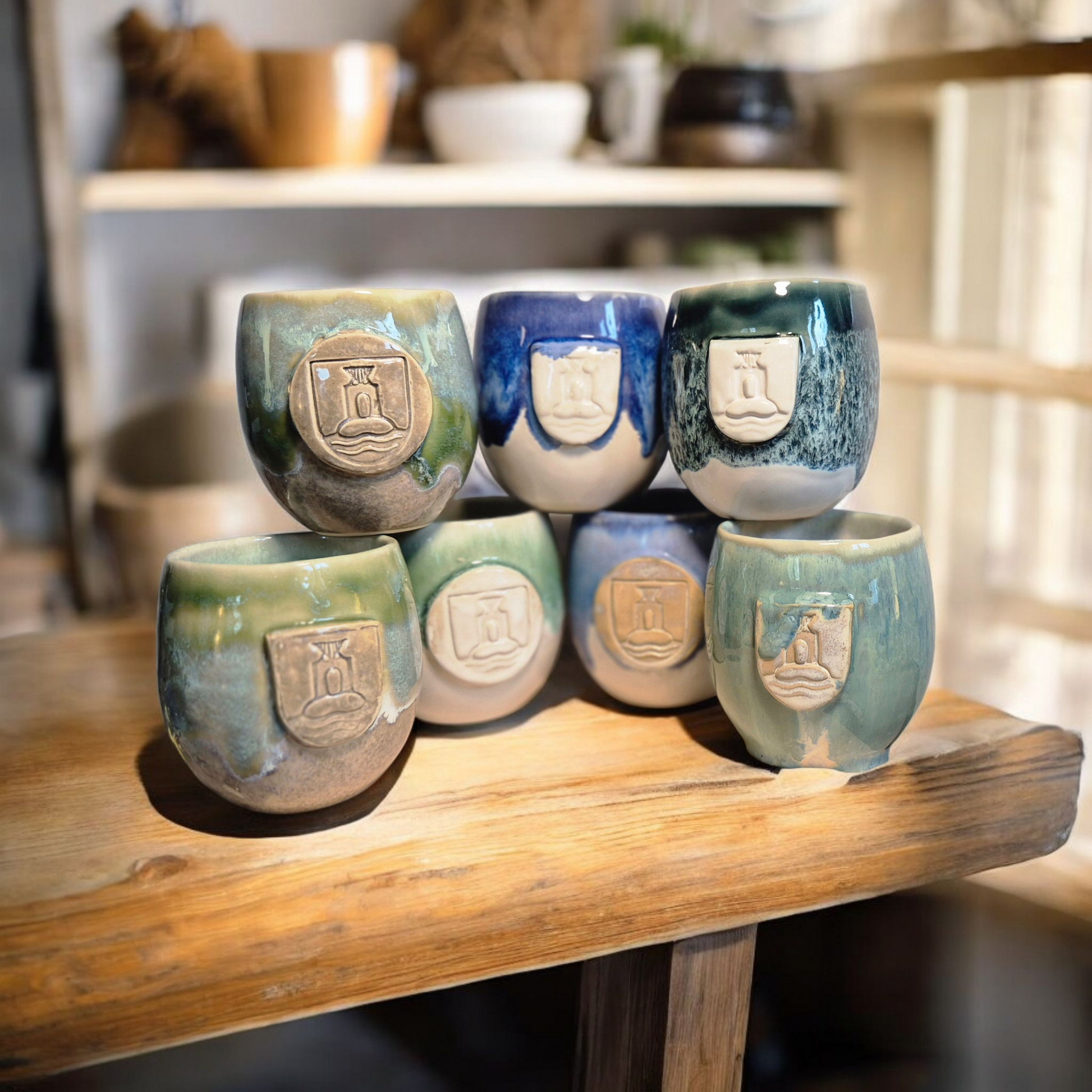 handgetöpferte Keramik Cup ohne Henkel mit dem Norderney Kap Wappen Fassungsvermögen : 300 ml Ungefähre Maße - 8,5 cm breit (ohne Griff) und 9,5 cm hoch Auf der Insel mit unserem Inselwasser eigens hergestellt. All meine Cups werden in sorgfältiger Einzelanfertigung hergestellt jedes Werkstück ein Unikat. Es ist eine abgerundete Tasse und ideal für Tee oder Kaffee. Und Kakao darf es natürlich auch sein. Das perfekte Geschenk. Handglasierte Keramiktasse ohne Henkel. Da meine Werkstücke handgearbeitet werden, unterscheidet sich jeder etwas von den anderen, was bedeutet, dass Sie immer ein Unikat erhalten. Sie sind lebensmittelecht, spülmaschinen- und mikrowellenfest, obwohl sie ihren Glanz besser behalten, wenn sie von Hand gespült werden. Was ich auch wirklich empfehle. Umso länger bleiben Sie so schön glänzend. Alle Glasuren sind bleifrei und umweltfreundlich. Jede Tasse ist signiert und völlig individuell. Alle Produktfotos wurden mit natürlichem Tageslicht aufgenommen, die tatsächliche Farbe kann jedoch leicht von der Darstellung auf dem Bildschirm abweichen. Bei Fragen gerne schreiben.